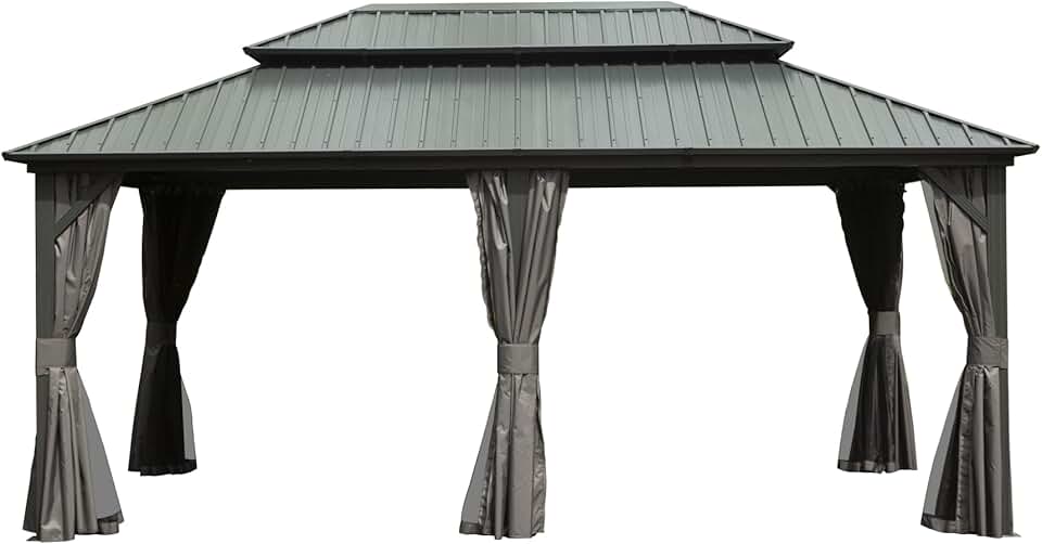 12' X 18' Hardtop Gazebo, Aluminum Metal Gazebo with Galvanized Steel Double Roof Canopy, Curtain and Netting, Permanent Gazebo Pavilion for Patio, Backyard, Deck, Lawn