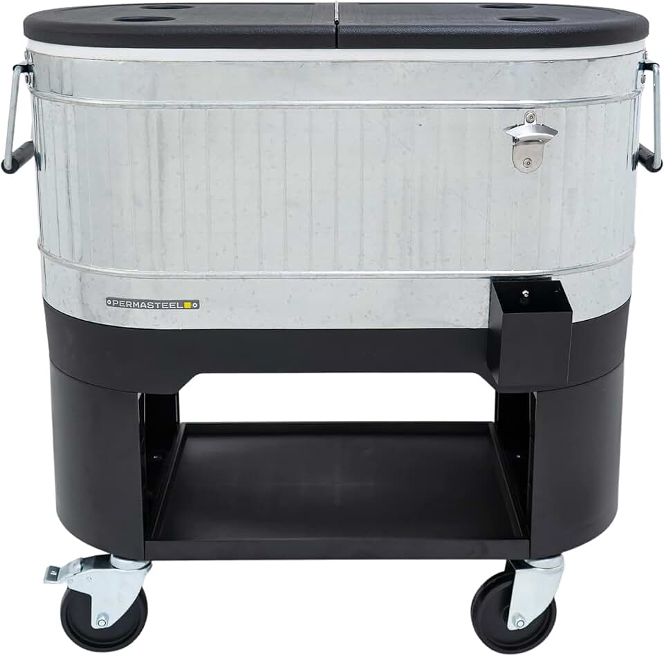 Permasteel 120-Qt Outdoor Patio Cooler with Wheels and Handles, Galvanized Steel