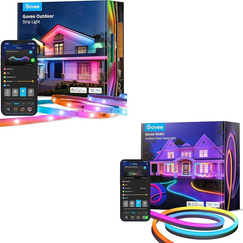 Govee Outdoor LED Strip Lights 98.4ft Bundle Outdoor Neon Rope Lights, 64+ Scenes, Music Sync, Flexible LED Rope Lights for Yard Garden Patio, Compatible with Alexa, Google Assistant