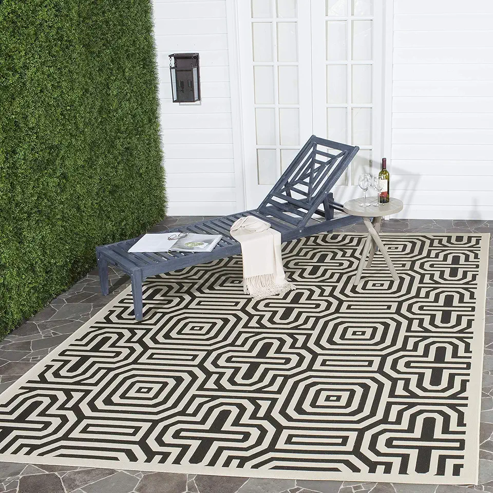 SAFAVIEH Courtyard Collection 8' x 11' Sand / Black CY2962 Indoor/ Outdoor Waterproof Easy-Cleaning Patio Backyard Mudroom Area-Rug
