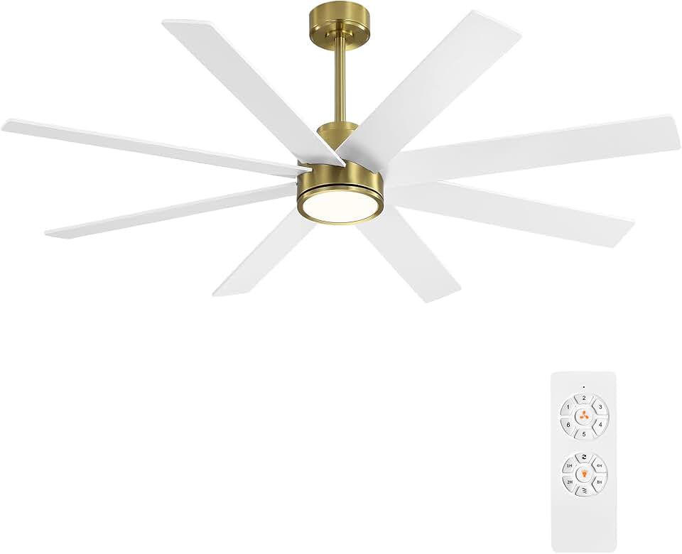 WINGBO 72" Large DC Ceiling Fans with Lights and Remote, 3 Downrods, 8 Plywood Blades, 6-Speeds Reversible DC Motor, 3CCT, Indoor Ceiling Fan for Bedroom Living Room Patio, Brass and White