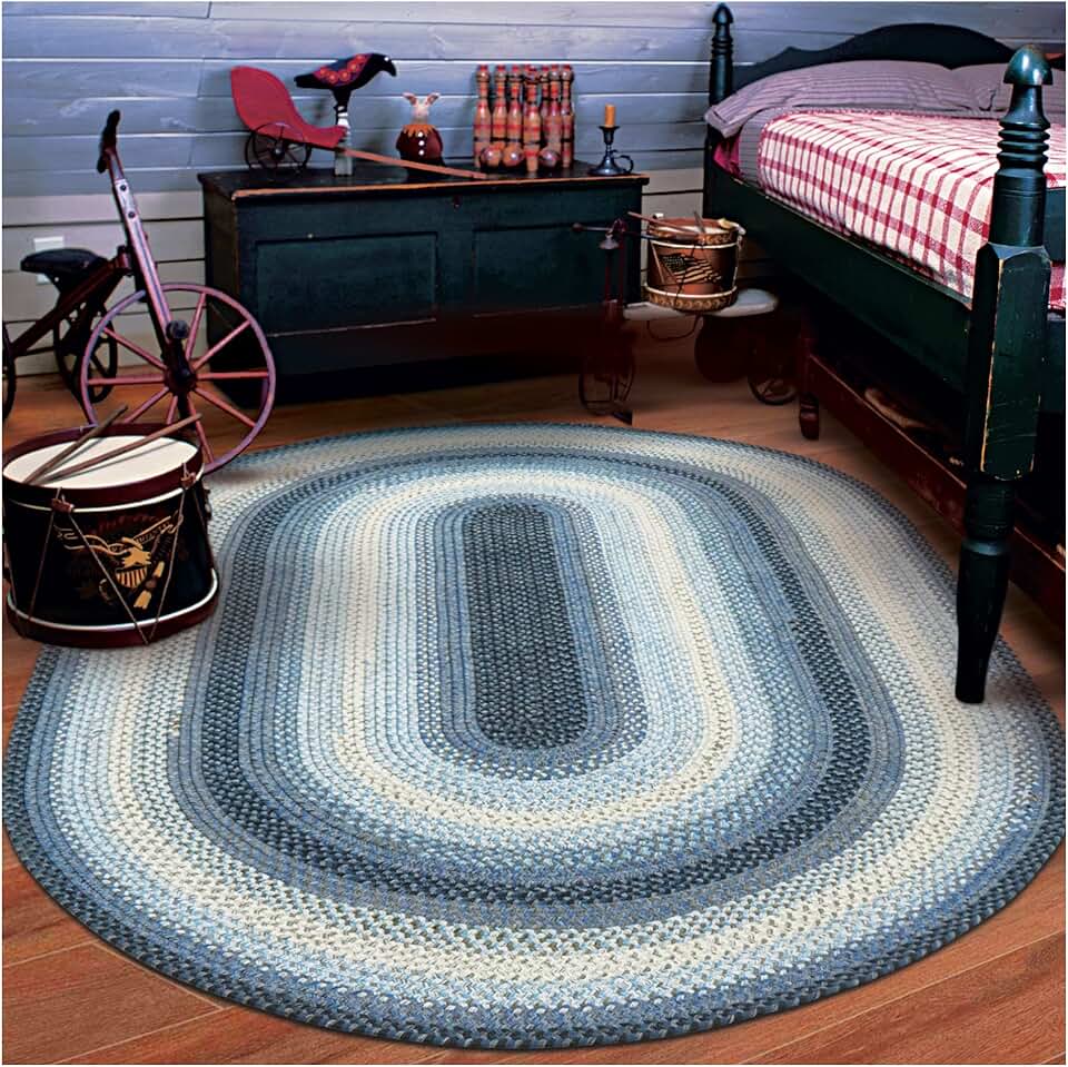 Homespice Juniper Country Blue Oval Rug, Ideal as a 4x6 Outdoor Rug for Patio and Large Braided Entry Mat - Stain Resistant, UV Treated and Waterproof - Reversible and Pet Friendly Rugs, 4x6 Feet