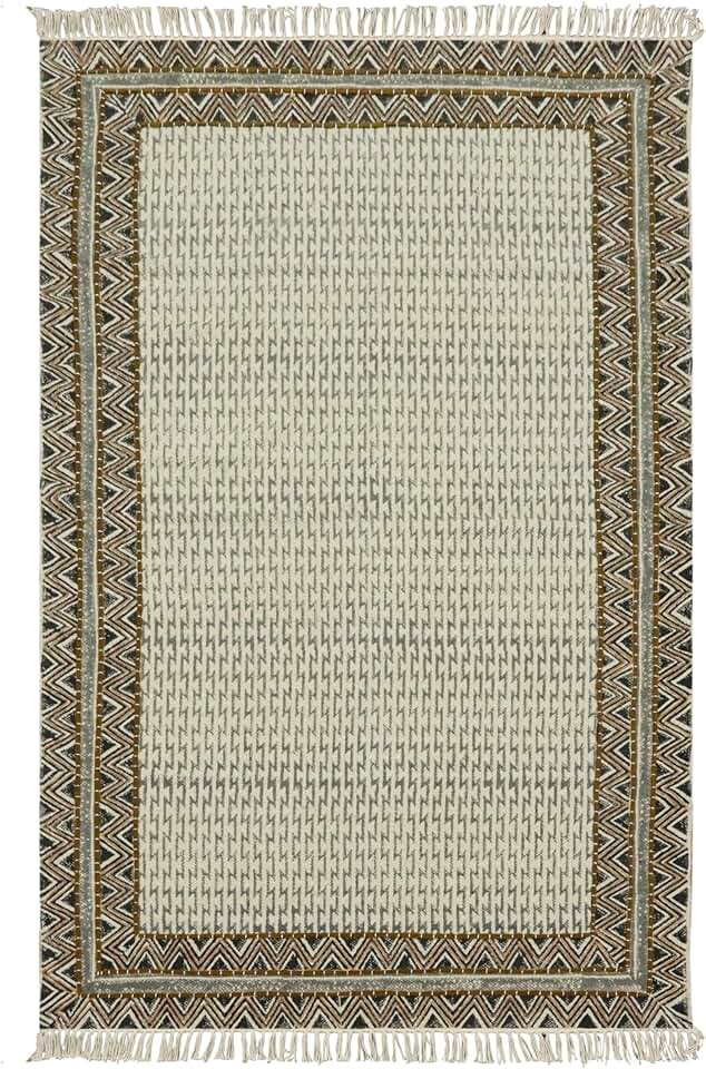 Kilim Rug 12x15 Area Rugs for Flatweave Rug Black Beige Cotton Rug Embroidery Washable Dhurrie Indoor Outdoor Use Rugs for Large Area Dining Room Living Room Hall Room Patio Doormat