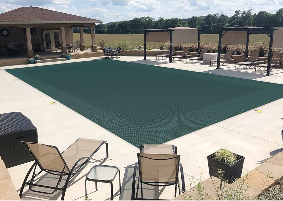 18'x40' Winter Pool Covers for Inground Swimming Pool Rectangle Mesh Safety Pool Covers for Backyard Yard Deck Patio Pool Wire Cable All Edges Dark Green (Polypropylene)