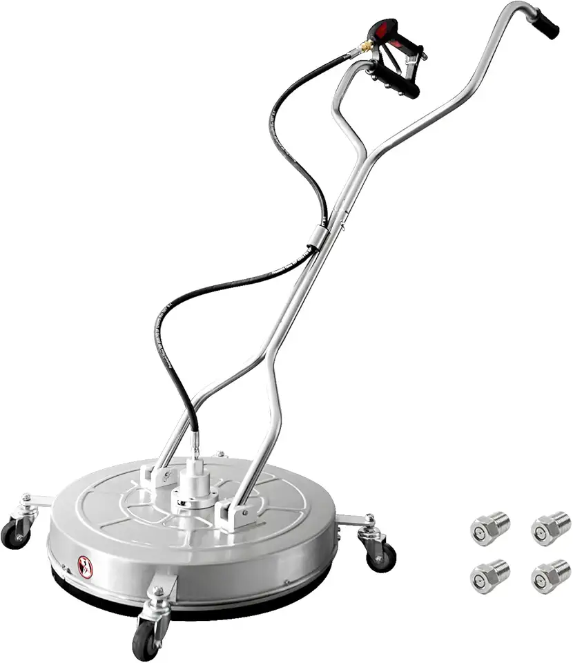 janz 24" Pressure Washer Surface Cleaner with 4 Wheels,Dual Handle,Stainless Steel Housing, 2 Hose Adapters and 4 Replacement Nozzles, Ideal for Cleaning Driveways, Sidewalks,Patios,Decks