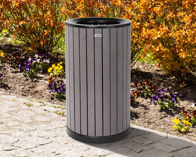 Alpine 32 Gallon Commercial Outdoor Trash Can - Heavy Duty Garbage Can Outdoor, Industrial Open Top Trash Can with Plastic Panels for Patio, Parks, Trails, Resorts (Flat Lid - Grey)
