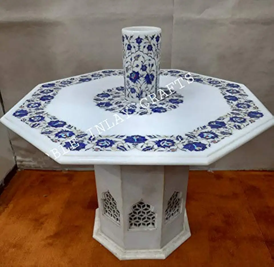 Lapizlazuli Marble Inlay Center Table Top, Coffee Table, Patio Table, Hallway Table with Marble Stand (Inlay Vase Complimentary), Piece Of Conversation, Family Heir Loom