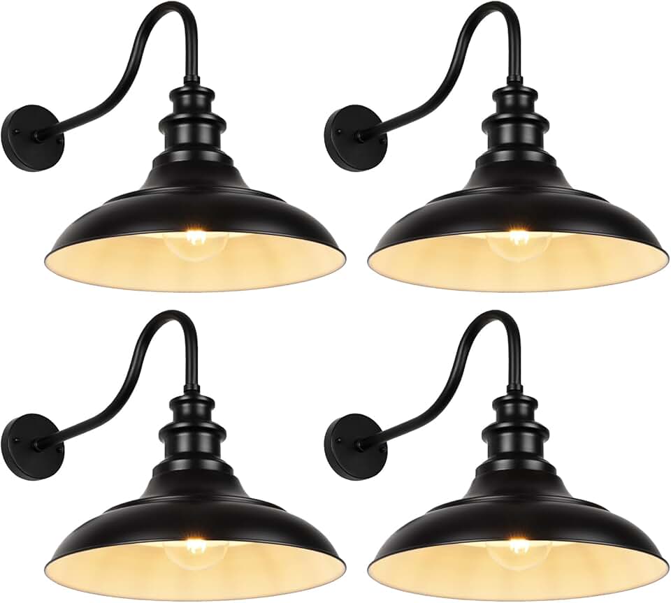Exterior Farmhouse Gooseneck Barn Light, 16 Inch Vintage Outside Garage Light Fixtures, 4PCS Anti-Rust Waterproof Outdoor Light for Patio Frontdoor Entryway Doorway, Matte Black