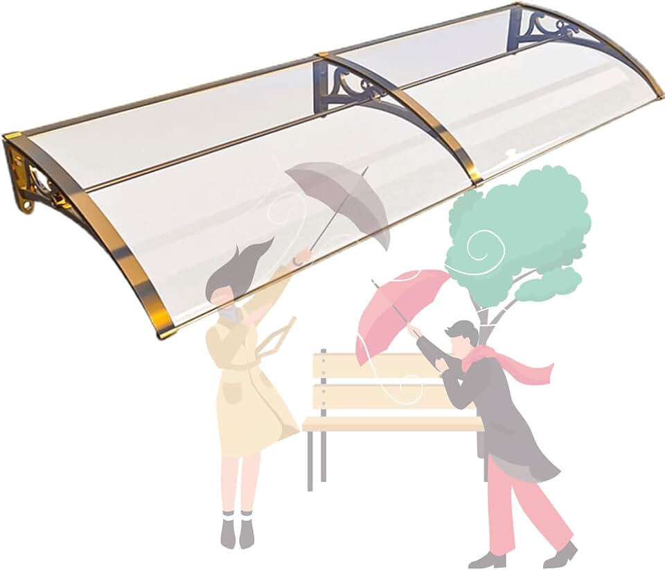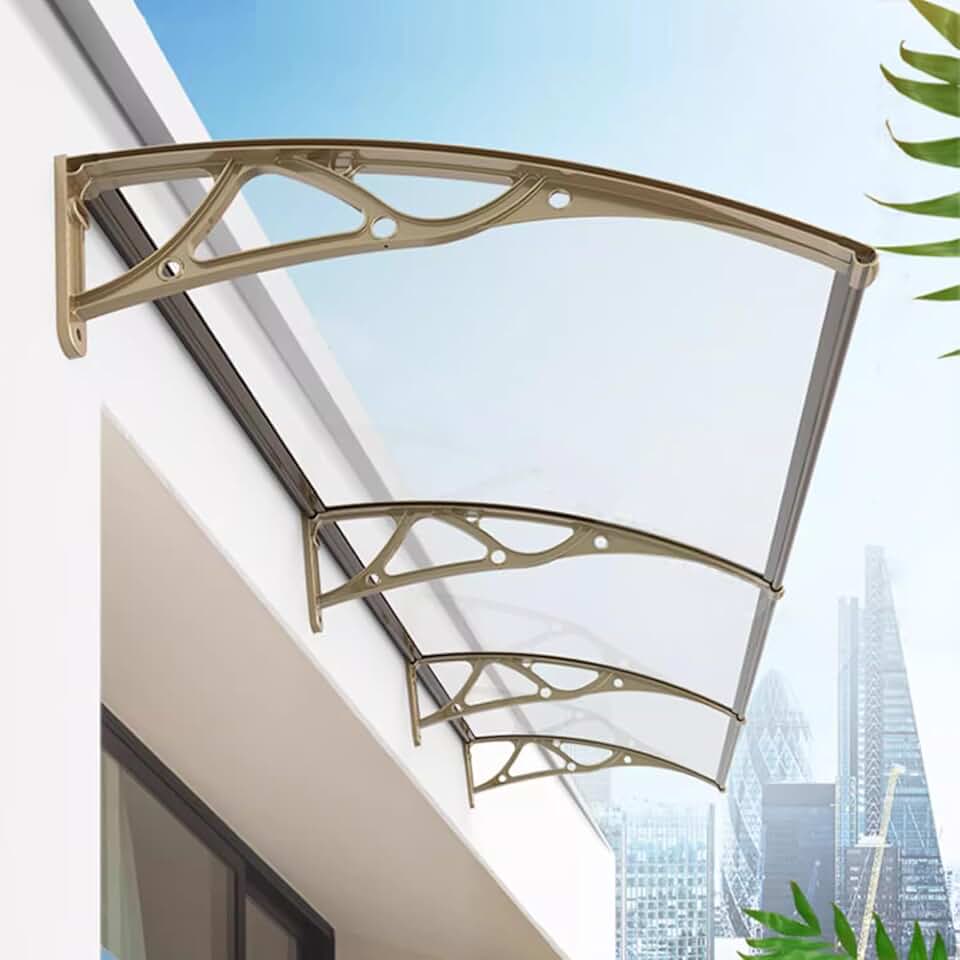 Door Canopy Roofing Canopies Patio Rain Shelter Porch Windproof Cold Protection Porch Canopy for Porch Patio Roof with champagne Aluminum Alloy Bracket, transparent Polycarbonate Board
