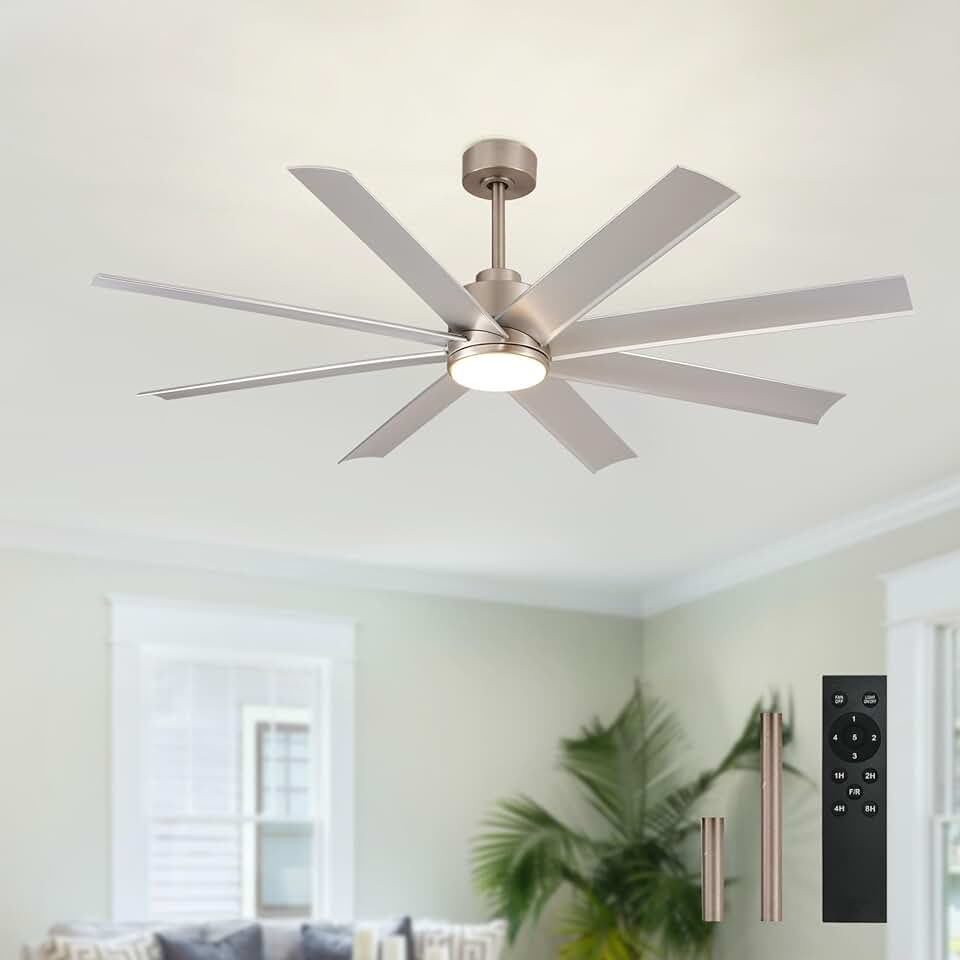 Large Ceiling Fan for Indoor: 60" Ceiling Fan with Remote 8 Blades DC Motor 1/2/4/8H Timer - Farmhouse Ceiling Fans with Light for Big Bedroom Living Room Outdoor Patio