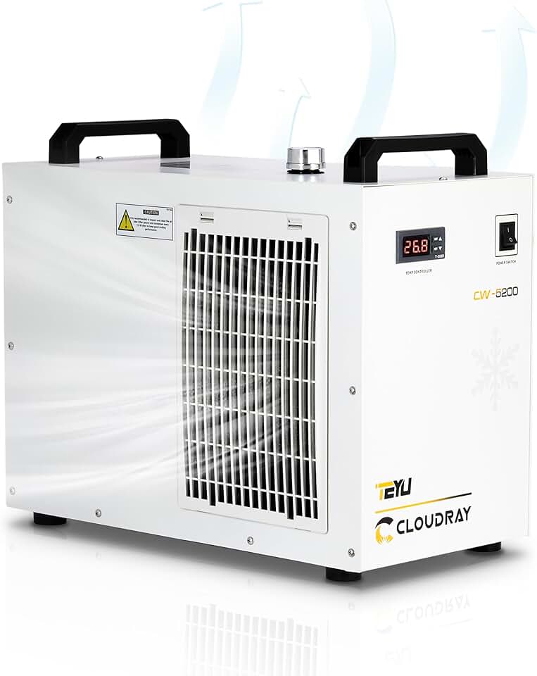 Industrial Water Chiller CW-5200DH 6L 0.81HP 3.43gpm Water Cooling System for 60W 70W 80W 90W 100W 120W 130W 150W,CO2 Laser Engraving & Cutting Machines,Cools 5596 Btu/h Heat Dissipation
