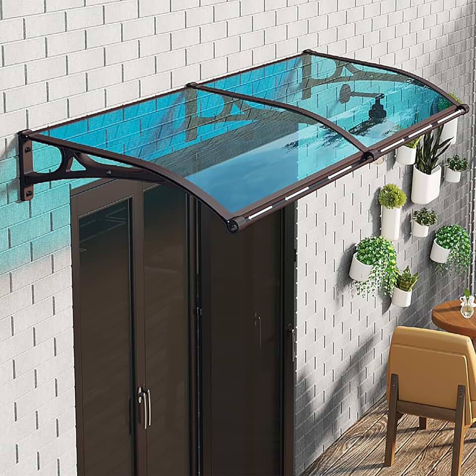 Patio Awnings,Door awnings Exterior,Door Canopy,Window Awning Outdoor,Aluminum Alloy Material, Transparent Canopy, Suitable for Outdoor Balconies, Window Doors, Eaves and rain (Color : Champagne+Grey