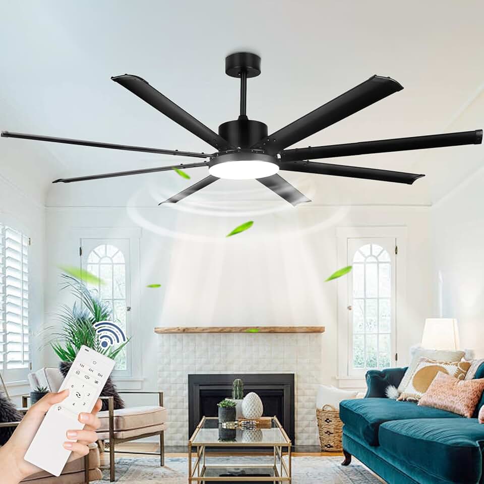 Depuley 80" Ceiling Fan With Lights and Remote, Large Black Ceiling Fans Quiet Reversible DC Motor 8 Aluminum Blades, Modern Ceiling Fan for Kitchen Living Room Patio, 6 Speed 3 CCT 3000K-6000K, Timer