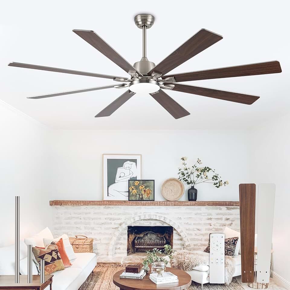 72 Inch Ceiling Fans with Lights and Remote Control, Large Ceiling Fans with 6 Speed DC Motor and 8 Wood Blades, Modern Ceiling Fans for Indoor/Outdoor Living Room, Farmhouse and Patio