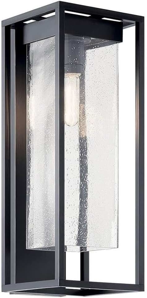 Mercer 24" Outdoor Lantern Modern Industrial 1 Light Wall Light Fixture with Clear Seeded Glass in Black with Silver Highlights for Porch, Patio or Garage Entrance (10.5" x 9" x 24") 59063BSL