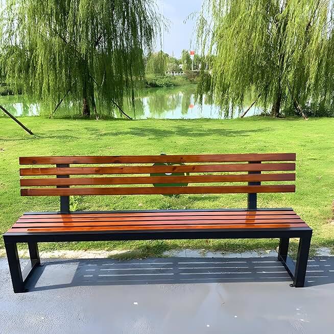 LITFAD Mid-Century Metal Park Bench in Black with Waterproof Wood Seating Gym Rest Bench Patio Bench for Outdoor Use - 87" L x 16" W x 33" H