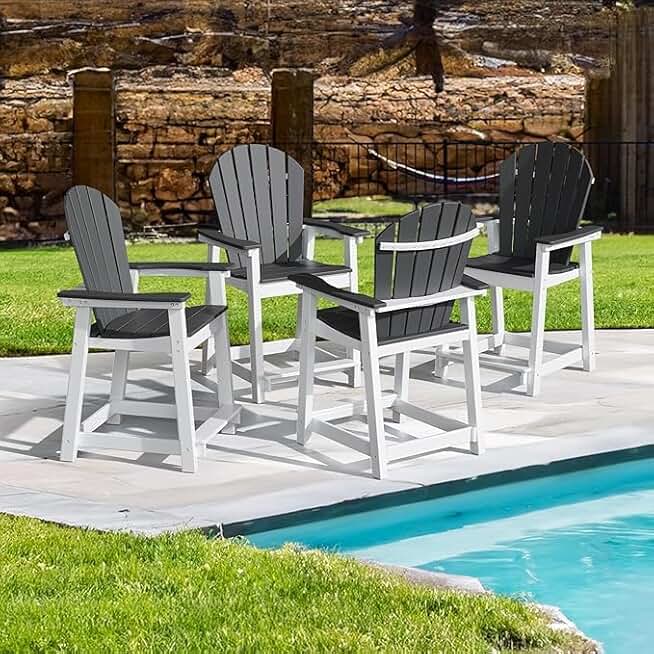 TYARDS Tall Adirondack Chair Set of 4, Recyclable HDPE Balcony Chair, Patio Chair with Widened Armrests and Footrest, Capacity 400LBS, Outdoor Chairs for Garden, Backyard
