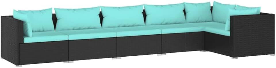 vidaXL Patio Lounge Set with Cushions - 6 Piece Set, Modular Design, Durable Powder Coated Steel & Plastic Construct, Weather Resistant PE Rattan Material, Black - Ideal for Outdoor Use