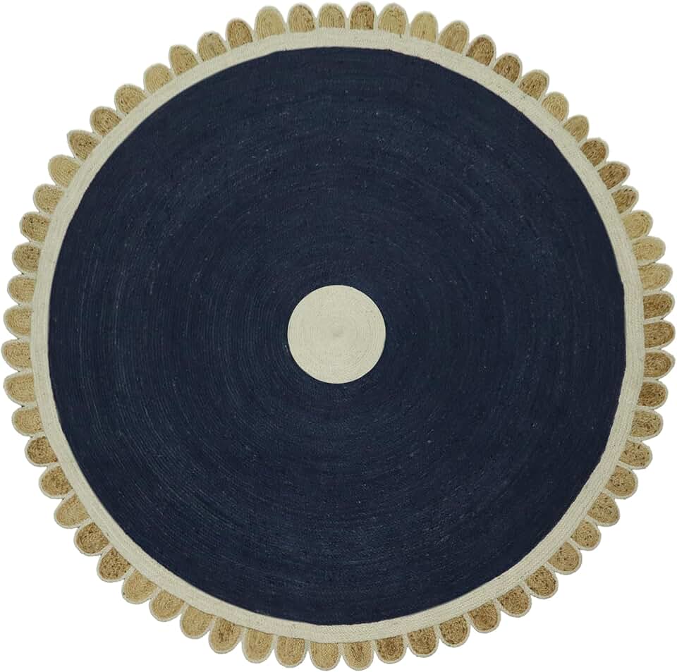 Hand Braided Round Area Rug 8 Blue Beige Circle Rug Kilim Area Rug Natural Jute Rug Flatweave Rug Indoor Area Hall Room Dining Side Round Patio Doormat