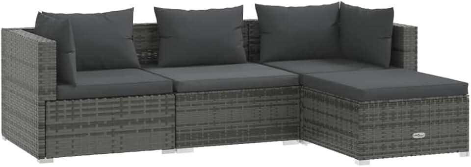 vidaXL Patio Lounge Set - 4 Piece Poly Rattan Outdoor Seating Set with Comfortable Cushions, Weather Resistant and Durable Material, Modular Design in Gray and Anthracite