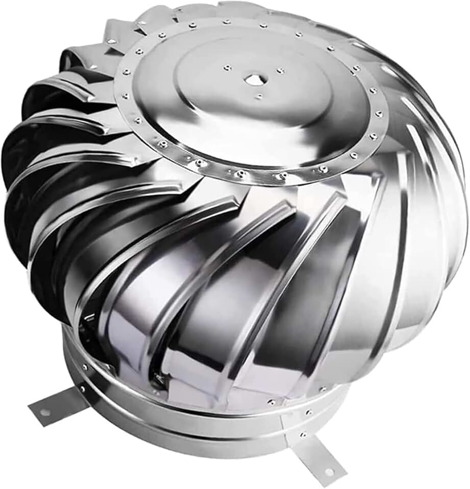 Roof Wind,Stainless Steel Turbine Ventilator Vents Roof Ventilator, Roof Wind Turbines Cap Vent Round, Ventilation Exhaust Heat Dissipation, Zero Consumption, Zero Noise, for Farms Factory R