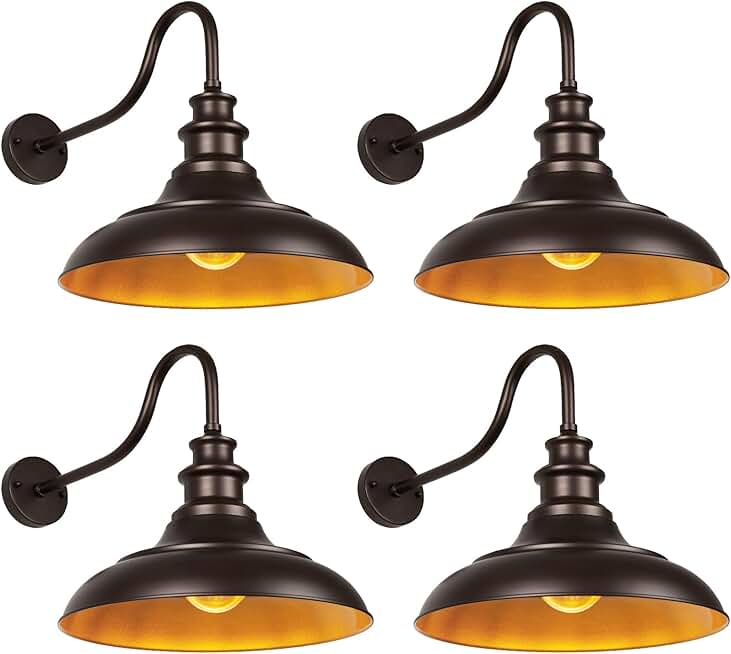 Exterior Farmhouse Gooseneck Barn Light, 16 Inch Vintage Outside Garage Light Fixtures, 4PCS Anti-Rust Waterproof Outdoor Light for Patio Frontdoor Entryway Doorway