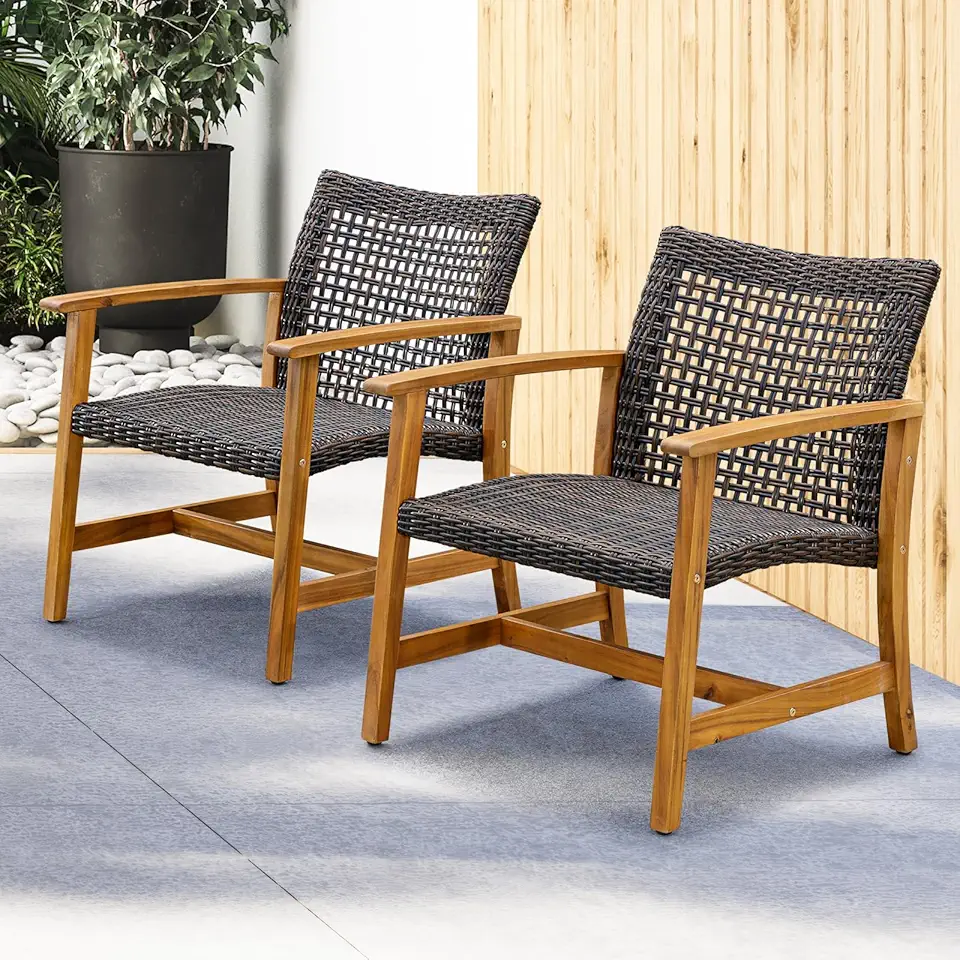 Idzo Liberte 500lbs Capacity Acacia Outdoor Club Chairs Set of 2, FSC Teak Finish Patio Furniture Sets with Upgraded 2000Hours UV Resistant, Wood Wicker_Dynamic Brown