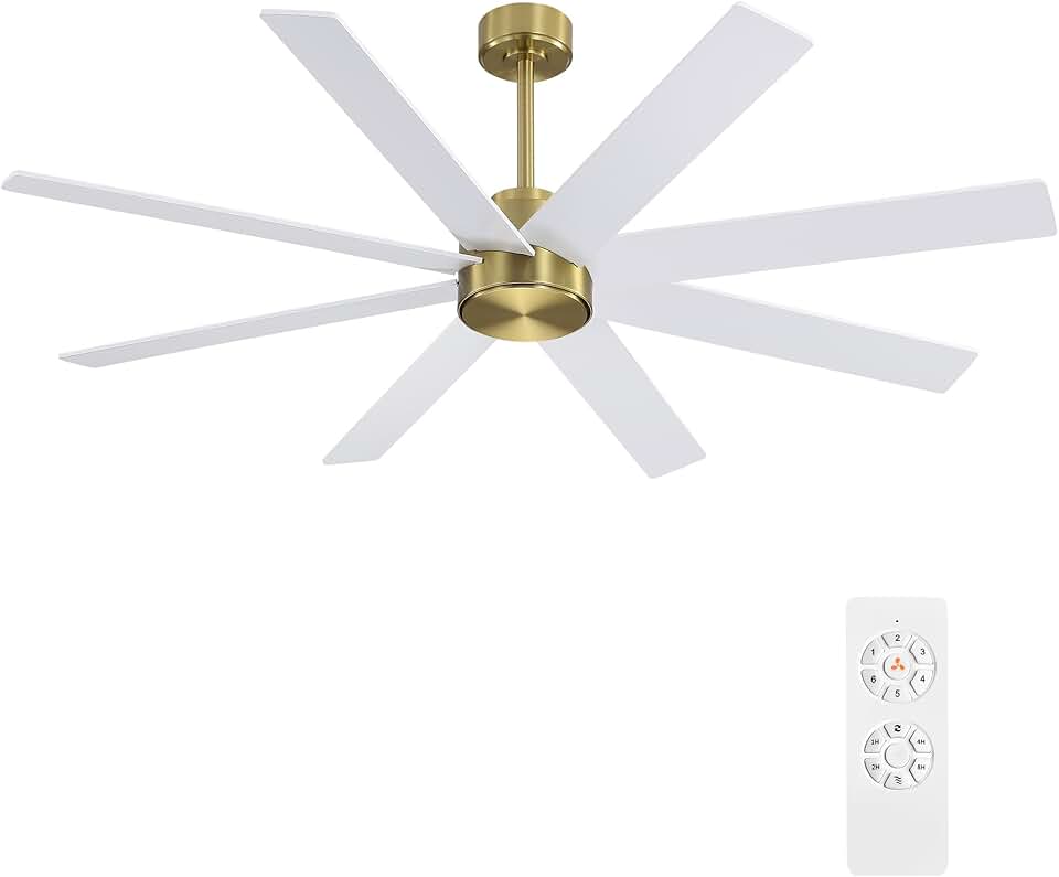 WINGBO 72" Large DC Ceiling Fans without Lights, 3 Downrods, 8 Plywood Blades, 6-Speeds Reversible DC Motor, Indoor Ceiling Fan No Lights for Bedroom Living Room Patio, Brass and White