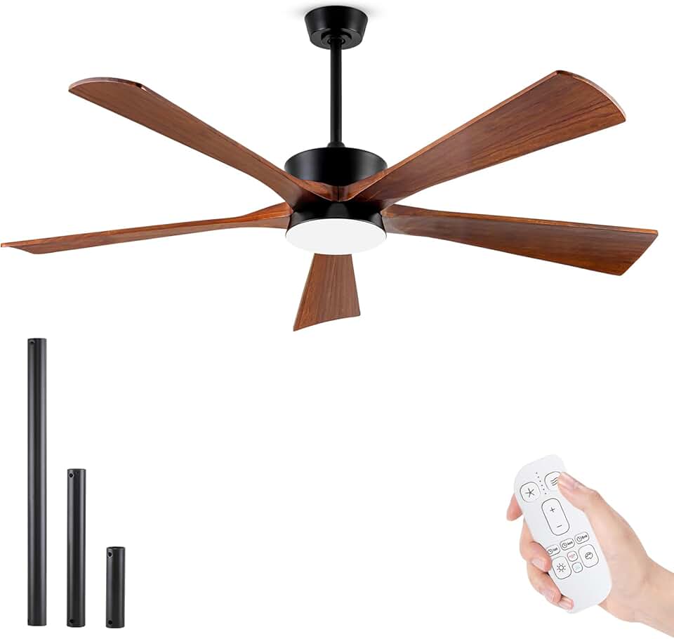 Depuley 60" Large Ceiling Fan with Light and Remote, Reversible Modern Ceiling Fan with 5 Speed, Low Profile Ceiling Fan LED Lights for Kitchen Patio Living Room Bedroom, Quiet DC Motor, 3CCT, Brown