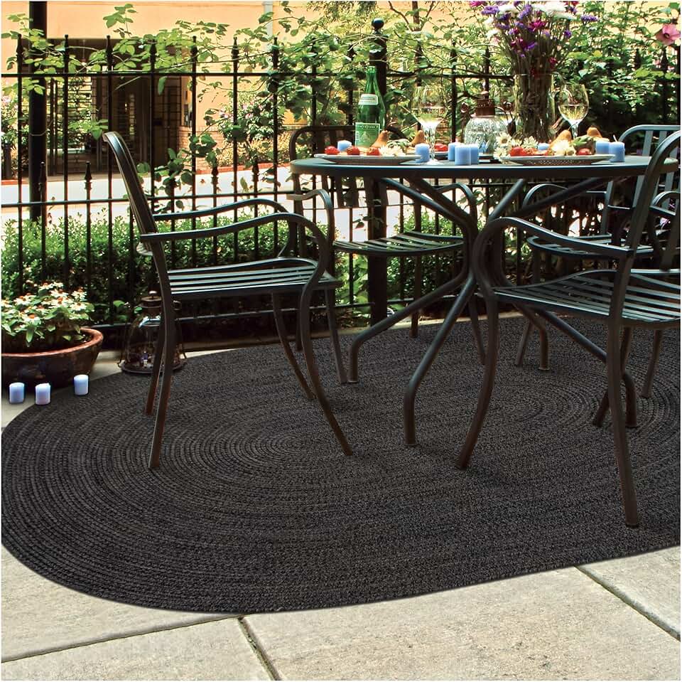 Homespice Black Oval Rugs, Ideal as a 5x8 Outdoor Rug for Patio and Solid Black Rug for Living Room - Waterproof, Easy Clean, and UV Treated - Large Stain Resistant and Pet Friendly Rugs, 5x8 Feet