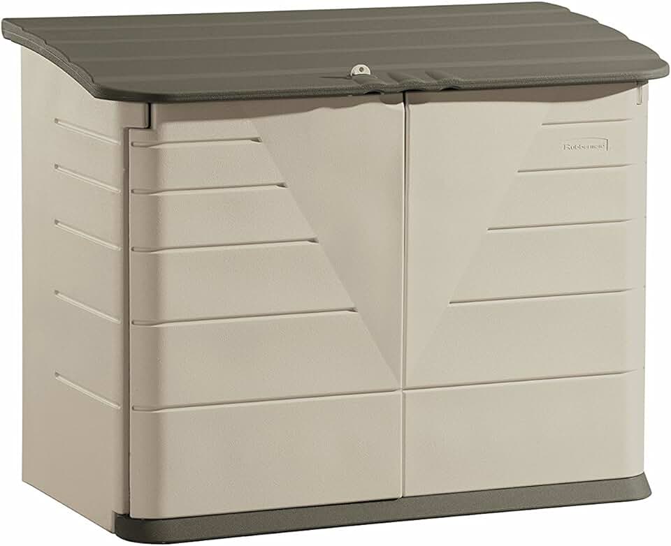 Rubbermaid Large Horizontal Resin Outdoor Storage Shed With Floor (5 x 4 Ft) Weather Resistant, Beige/Brown, Organization for Home/Backyard/Pool Chemicals/Toys/Garden Tools/Porch/Patio Cushions