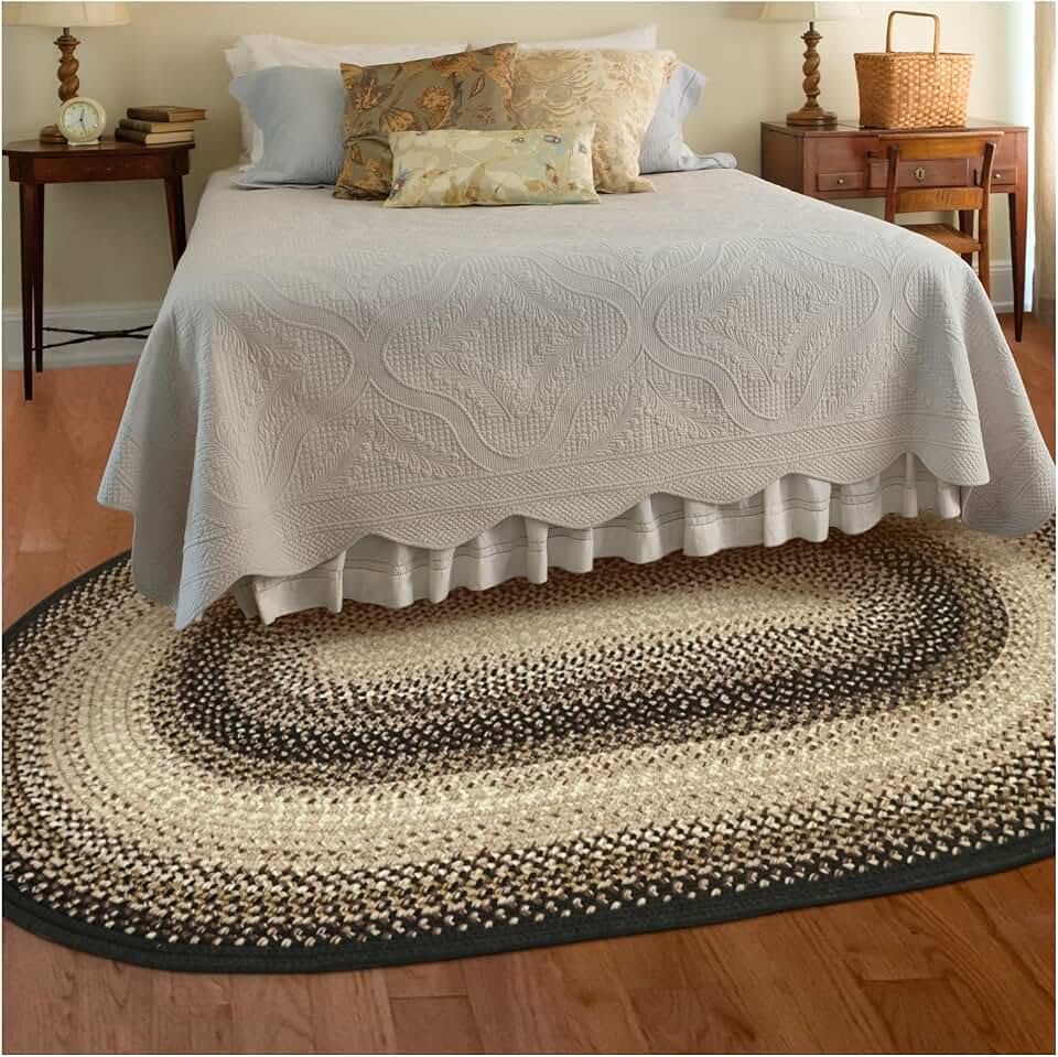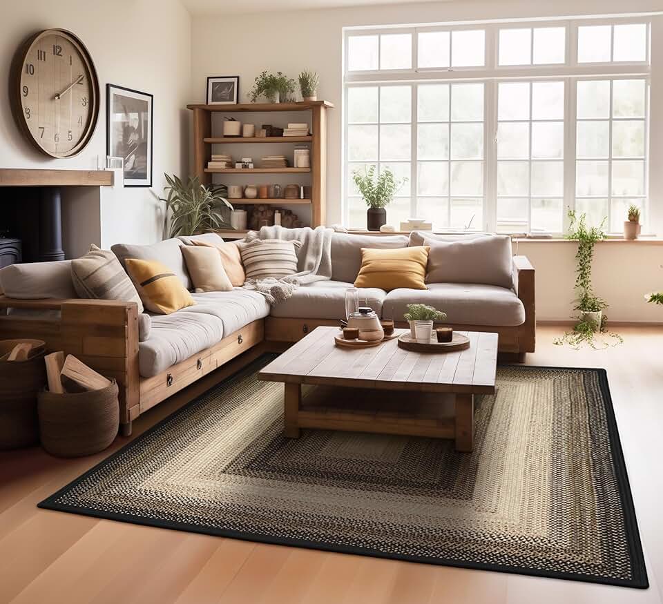 Homespice Black Mist Dark Rug for Primitive Decor, Ideal as 5x8 Outdoor Rug for Patio and Hand Braided Rug for Dining Room Table - Waterproof and Stain Resistant - Soft Beige and Black Rug, 5x8 Feet