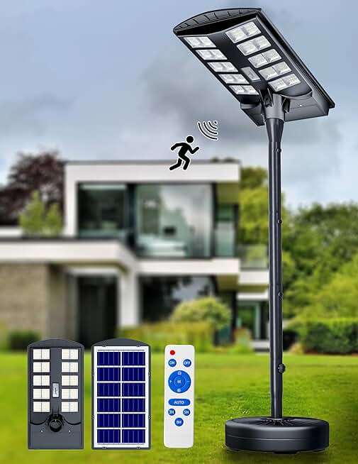 JAYNLT 4000W Solar Street Lights Outdoor with 78" Tall Pole, 3000K/4000K/6500K 300000LM Solar Floor Lamps Dusk to Dawn, IP68 Waterproof Solar Pole Lights with Motion Sensor for Yard, Patio, Camping