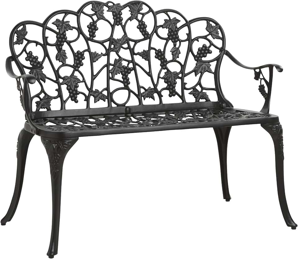 Plow & Hearth Weatherproof Grapevine Outdoor Bench | Holds Up To 300 lbs | Garden Patio Porch Park Deck | Metal | Black