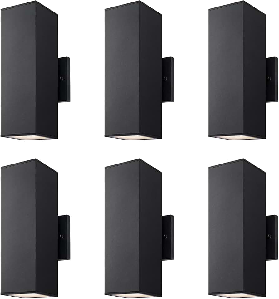 mirrea Modern Outdoor Porch Light Patio Light in 2 Lights with Aluminum Rectangular Tube and Tempered Glass Cover Waterproof Wall Sconce 6 Pack (Matte Black)