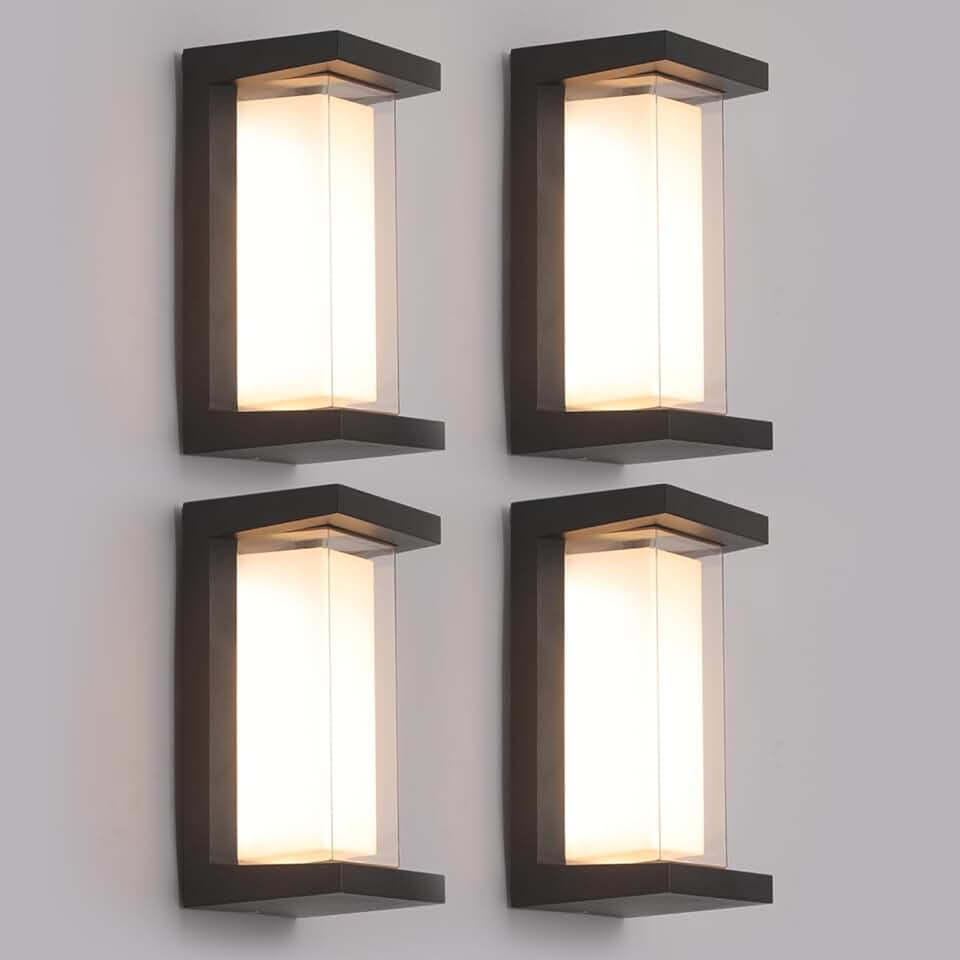 4 Pack 24W Outdoor Wall Lights Exterior/Interior LED 3-Color Adjustable 2100LM Sconces Lights IP65 Waterproof Modern Outdoor Patio Lighting Fixtures Aluminum Wall Lights Compatible with Dimmers