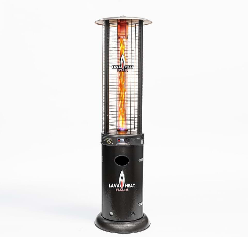 Lava Opus Lite Commercial Propane Patio Heater, 51000 BTU, 7.5 ft Cylindrical Steel & Aluminum Build, 360° Heat Distribution with Borosilicate Glass Tube, Triple Protection System, Hammered Black