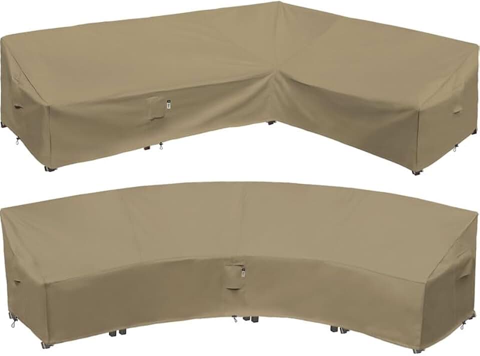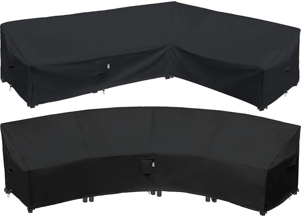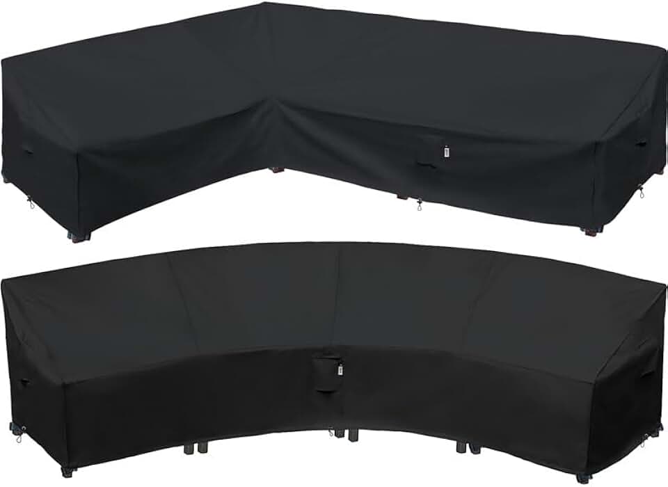 190"(128") Curved Patio Furniture Cover Bundles 120"x90" L Shaped Outdoor Couch Cover for Outdoor sectional Cover