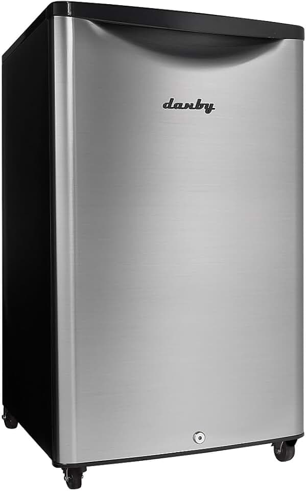 Danby DAR044A6BSLDBO 4.4 Cu.Ft. Outdoor Mini Fridge, IPX4-Rated Stainless Steel Look All Refrigerator for Patio, Cabana, Pool Bar, E-Star Rated, Spotless Steel