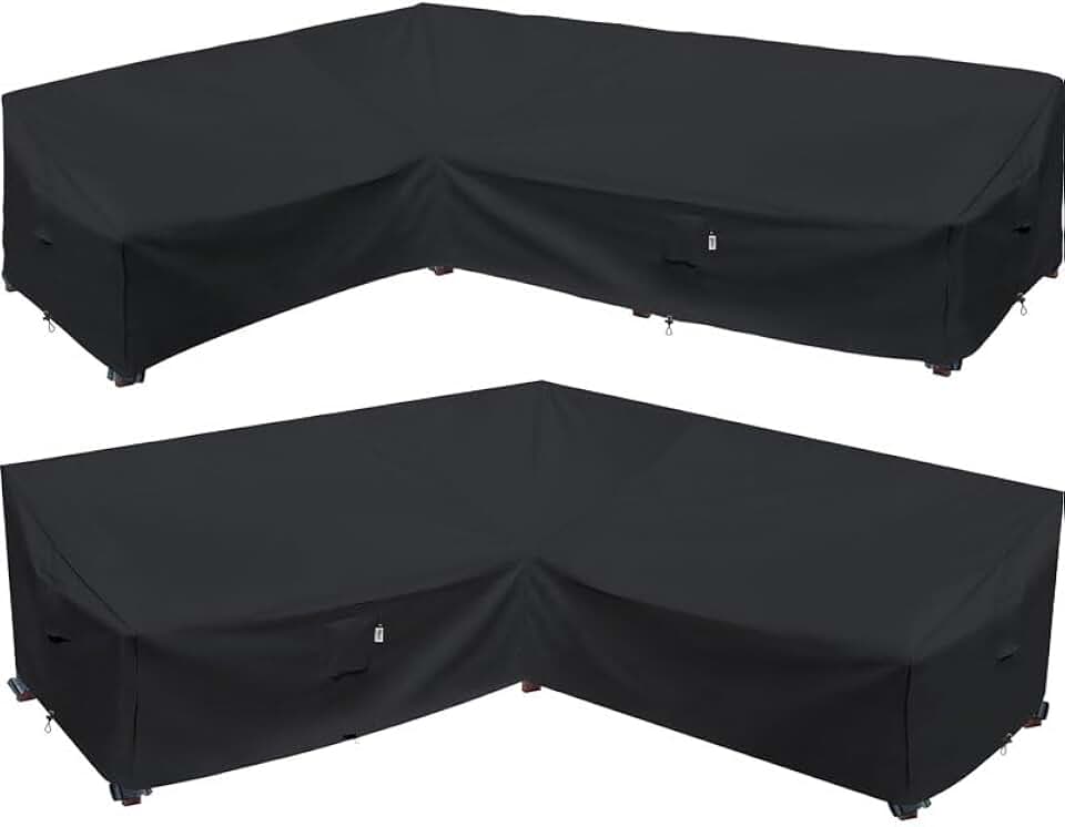 Heavy Duty Black Outdoor Sectional Cover,90"X120" L Shaped Outdoor Couch Cover Bundles V Shaped 100"x100" Patio Sectinal Cover,Lawn Patio Furniture Cover