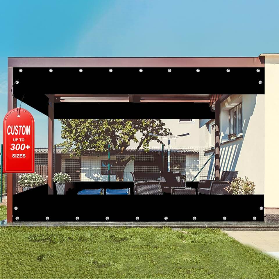 16OZ/Custom Size Outdoor Vinyl Curtain Heavy Duty Clear Tarp, Waterproof PVC Tarps Waterproof & UV Resistant Vinyl Patio Enclosure for Winter