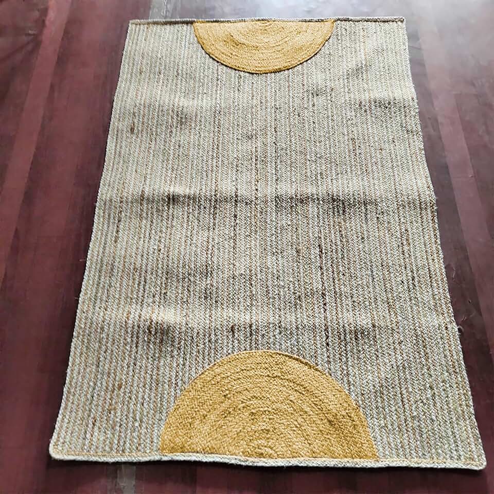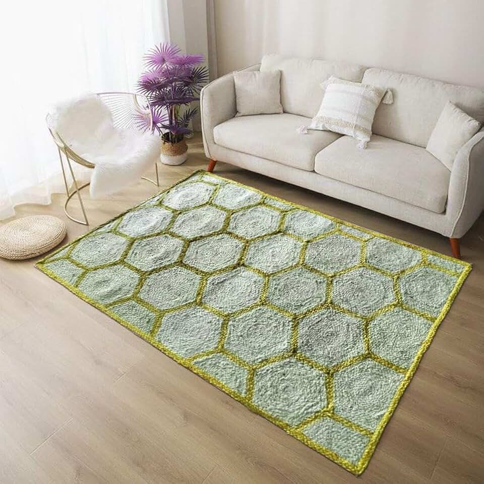 10x10 Ft Yellow and Beige Jute Square Rug for Bedroom Decorative Jute Carpet Bohemian Decorative Rug Custom Size Rug Patio décor Rug