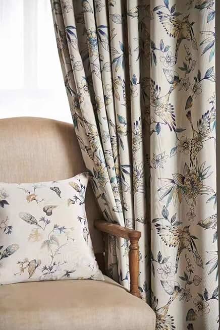 Floral Farmhouse Patio Door Curtain Extra Wide Curtain Panels Sliding Glass Door Cotton Linen Textured Curtain Jacquard Semi Blackout Curtains Inch Length, Beige (Grommet, Custom Size)
