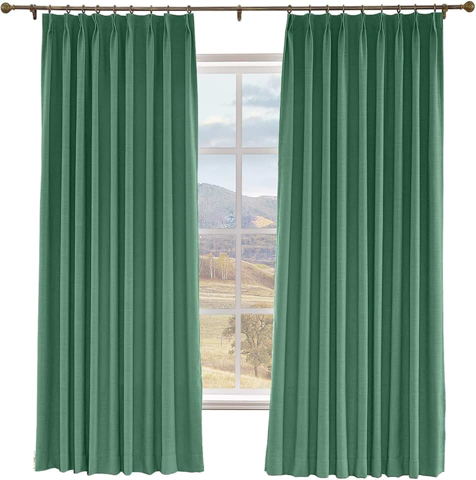 Macochico Extra Wide Linen Curtain,Themal Insulated Pinch Pleated Curtains Nursery & Infant Care Curtains for Living Room Meetingroom Theater Patio,Peacock 120W x 102L Inch (1 Panel)