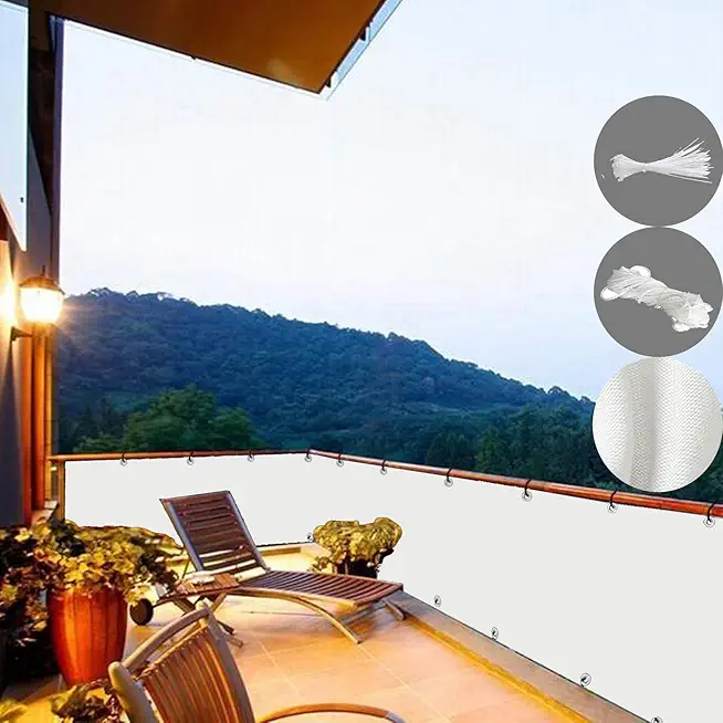 ZYFA Balcony Privacy Screen,Outdoor Fence Cover UV Protection Windscreen for Garden Backyard Patio Porch,with Bindings and Grommets,White,Custom Made Size