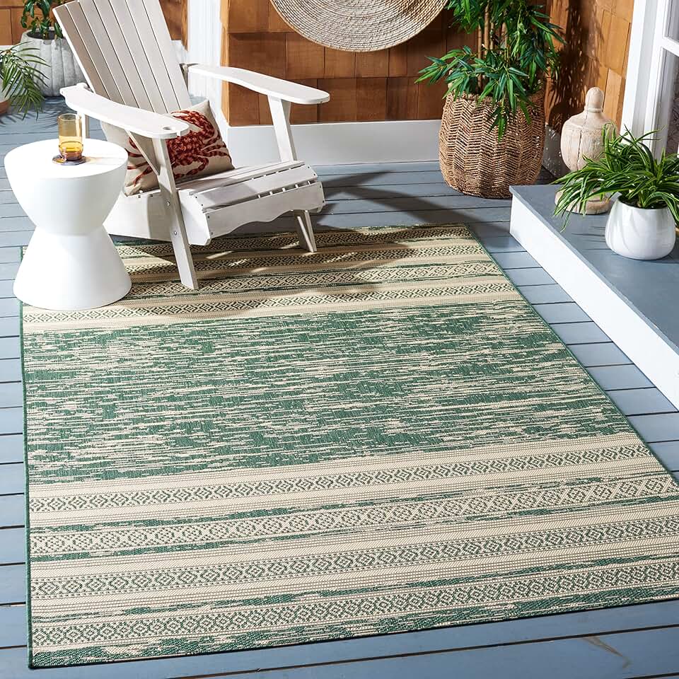 SAFAVIEH Courtyard Collection Area Rug - 9' x 12', Dark Green & Beige, Non-Shedding & Easy Care, Indoor/Outdoor & Washable-Ideal for Patio, Backyard, Mudroom (CY8061-32221)