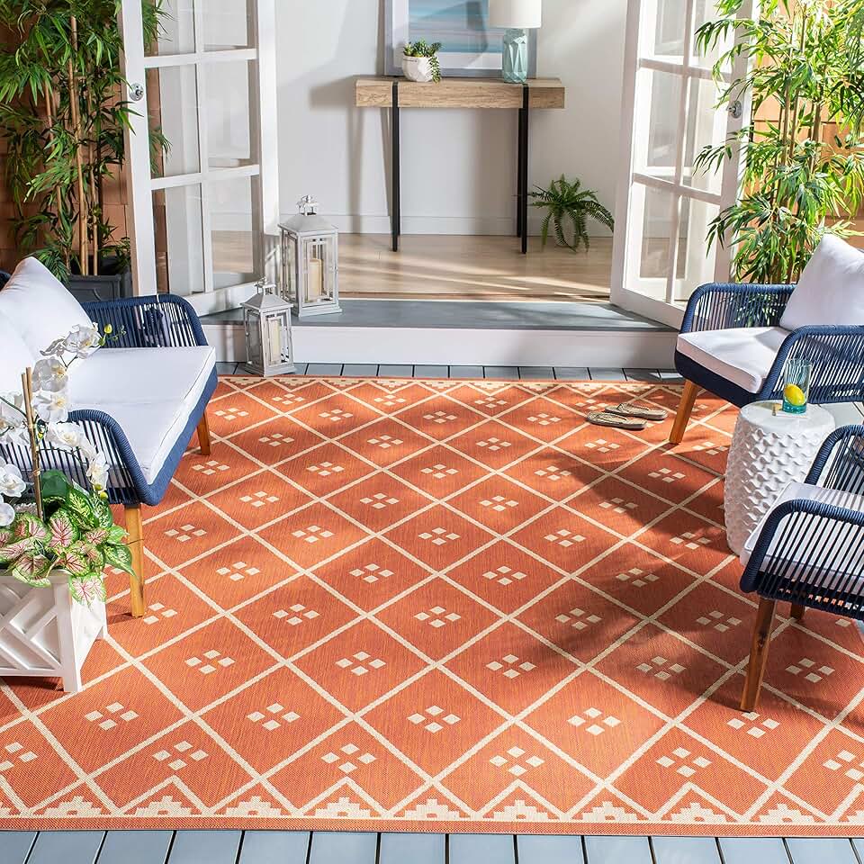 Safavieh Courtyard Collection Area Rug - 8' x 10', Terracotta & Light Beige, Non-Shedding & Easy Care, Indoor/Outdoor & Washable-Ideal for Patio, Backyard, Mudroom (CY6303-231)