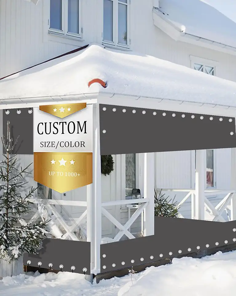 FoundGo 16OZ/Custom Size Outdoor Vinyl Curtain Heavy Duty Clear Tarp, Waterproof PVC Tarps Waterproof & UV Resistant Vinyl Patio Enclosure for Winter