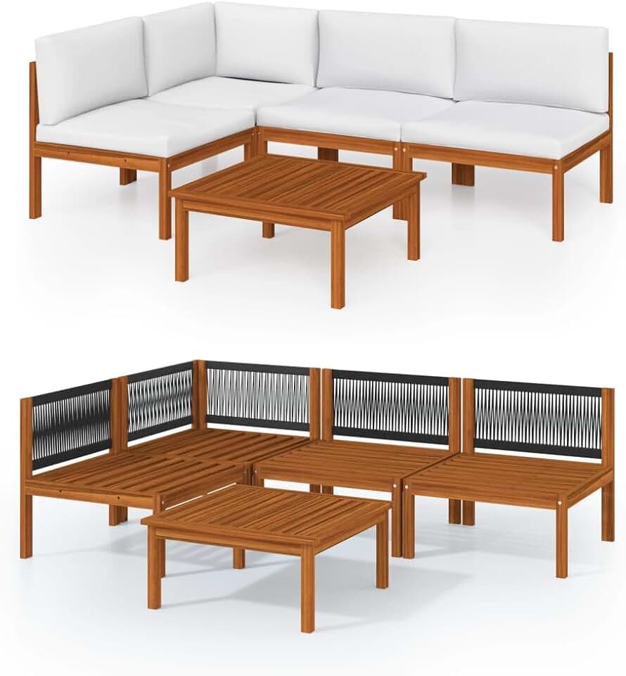 5 Piece Patio Lounge Set - Cream Cushions, Solid Acacia Wood, Outdoor Furniture, Easy Assembly, Weather-Resistant, Comfortable, Rustic Design