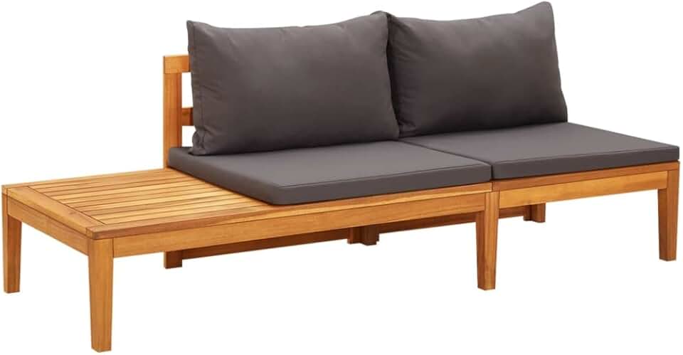 Solid Acacia Wood Patio Bench with Adjustable Table - Dark Gray Cushions Included - Versatile, Durable Outdoor Furniture with Unique Design
